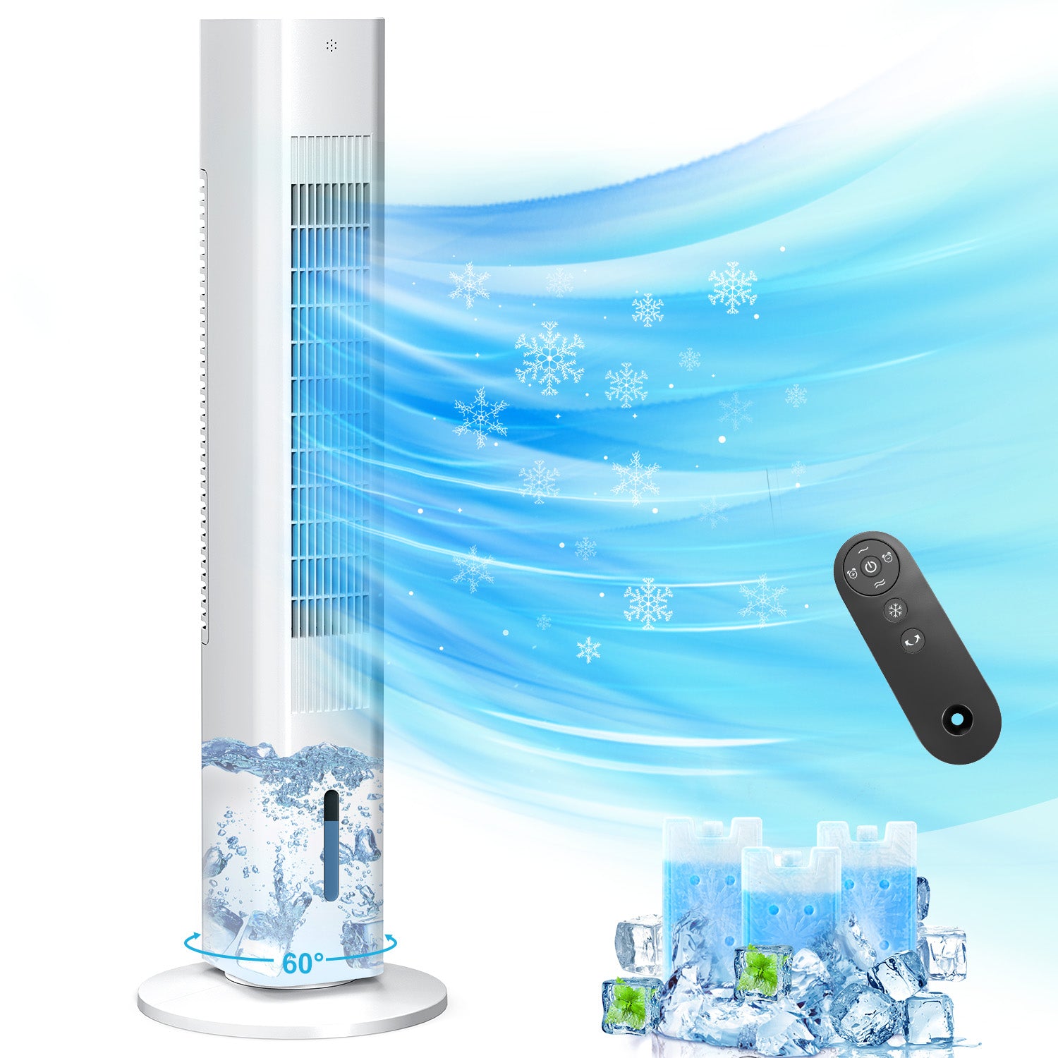 BIESQYA Windowless Portable Air Conditioner Ac Units with Remote, Evaporative Air Tower Cooling Fan, Small Indoor Outdoor Oscillating Swamp Cooler for Room Office Kitchen,7H Timer, Grey