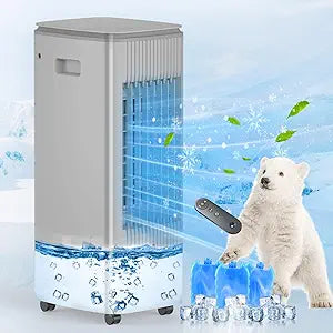 Portable Air Conditioner Ac Unit,BEBEGINE Evaporative Swamp Cooling Fan with Humidifier,3-IN-1 windowless Ventless cooler for Room Offices,Remote,3 Speed,7H Timer,3L Water Tank,3 Ice Pack, x-small